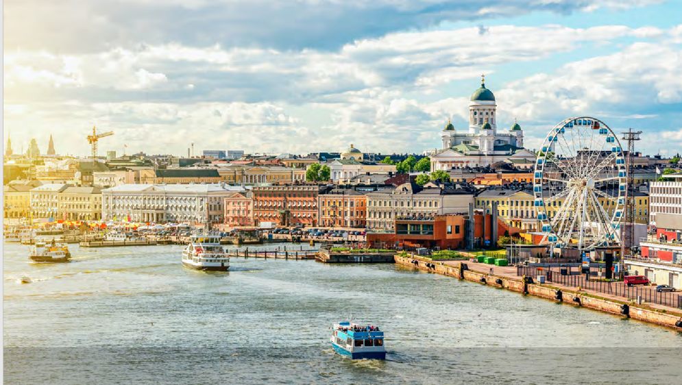 Helsinki, a capital da Finlândia, também é conhecida como “A Filha do Mar Báltico”. O roteiro inclui a Praça do Senado, a Universidade e a Catedral Luterana, todas com arquitetura neoclássica da década de 1840; a colori- da Praça do Mercado à beira-mar no Porto Sul; o Parque Kaivopuisto e as residências diplomáticas; a imponente estátua do Marechal Mannerheim; o Edifício do Parla- mento; o Finlandia Hall; a Igreja Ortodoxa Russa Uspens- ki; e o Monumento a Sibelius.